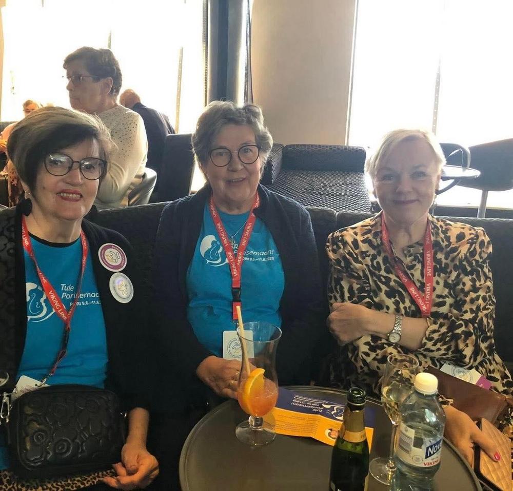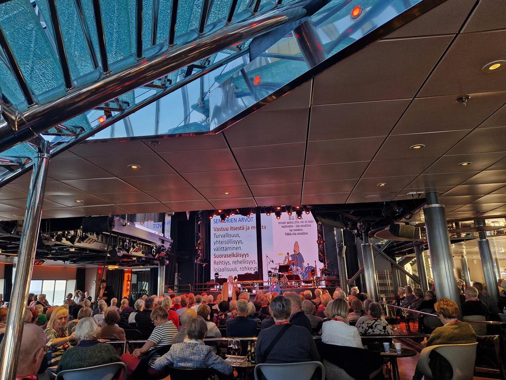 Laivalla oli monenmoista virallista ja viihdeohjelmaa mm Mummodisko. Mainostimme ensi kesänä Porissa järjestettävää liittokokousta.