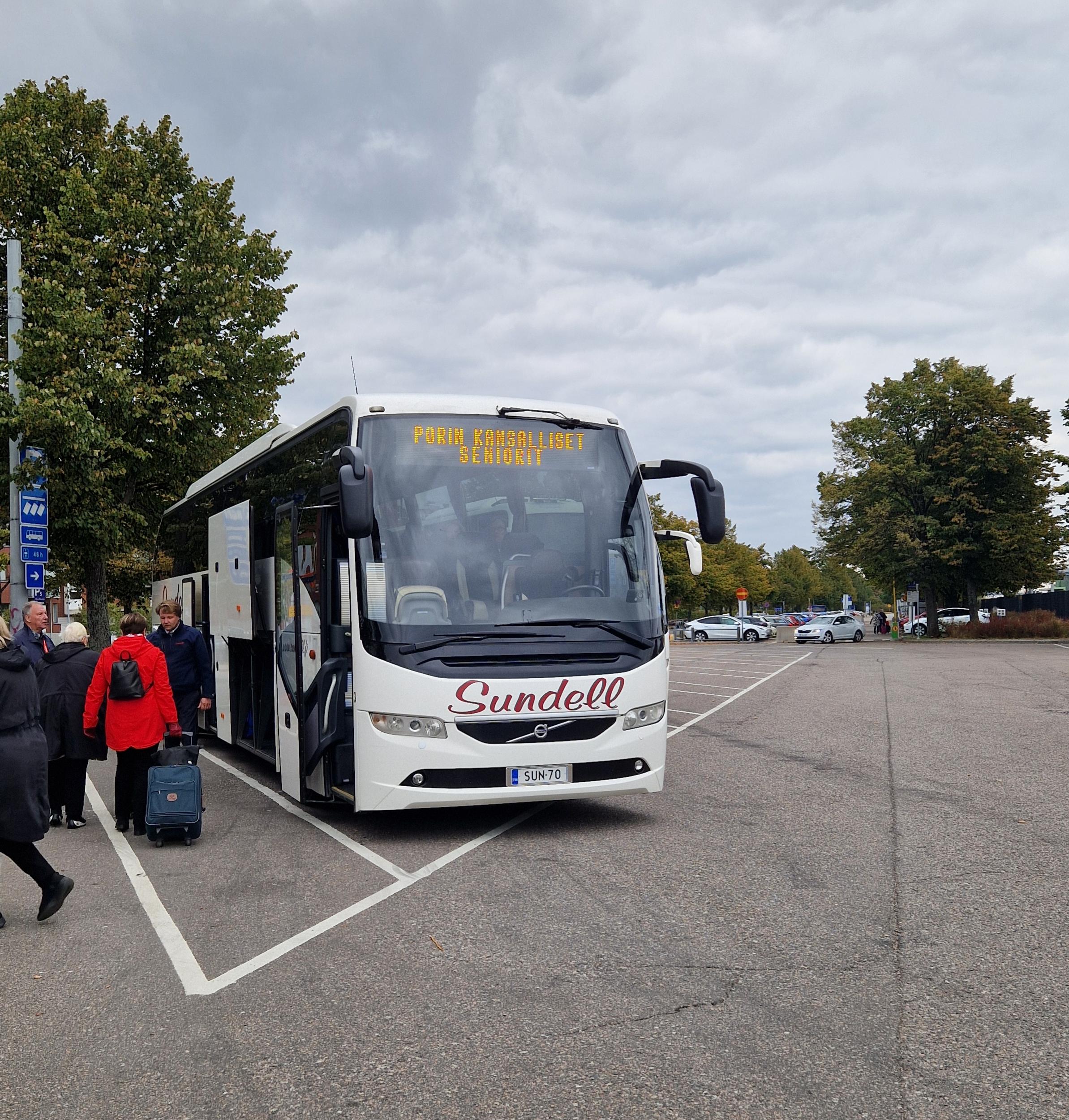 Sundellin bussi kuljetti meidät Helsinkiin ja takaisin ja otimme matkalta kyytiin Nakkilan ja Harjavallan senioreita.