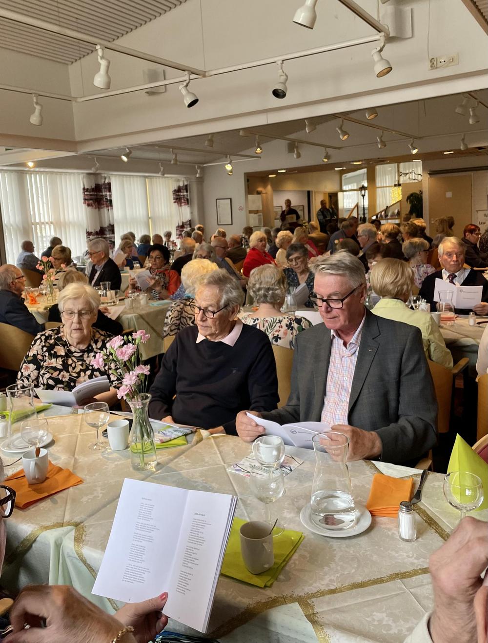 Toimintakauden viimeisessä kuukausitapaamisessa juhlittiin kevättä iloisen yhdessäolon, runojen, maukkaan ruoan ja munkkikahvien sekä soiton ja laulun kera.